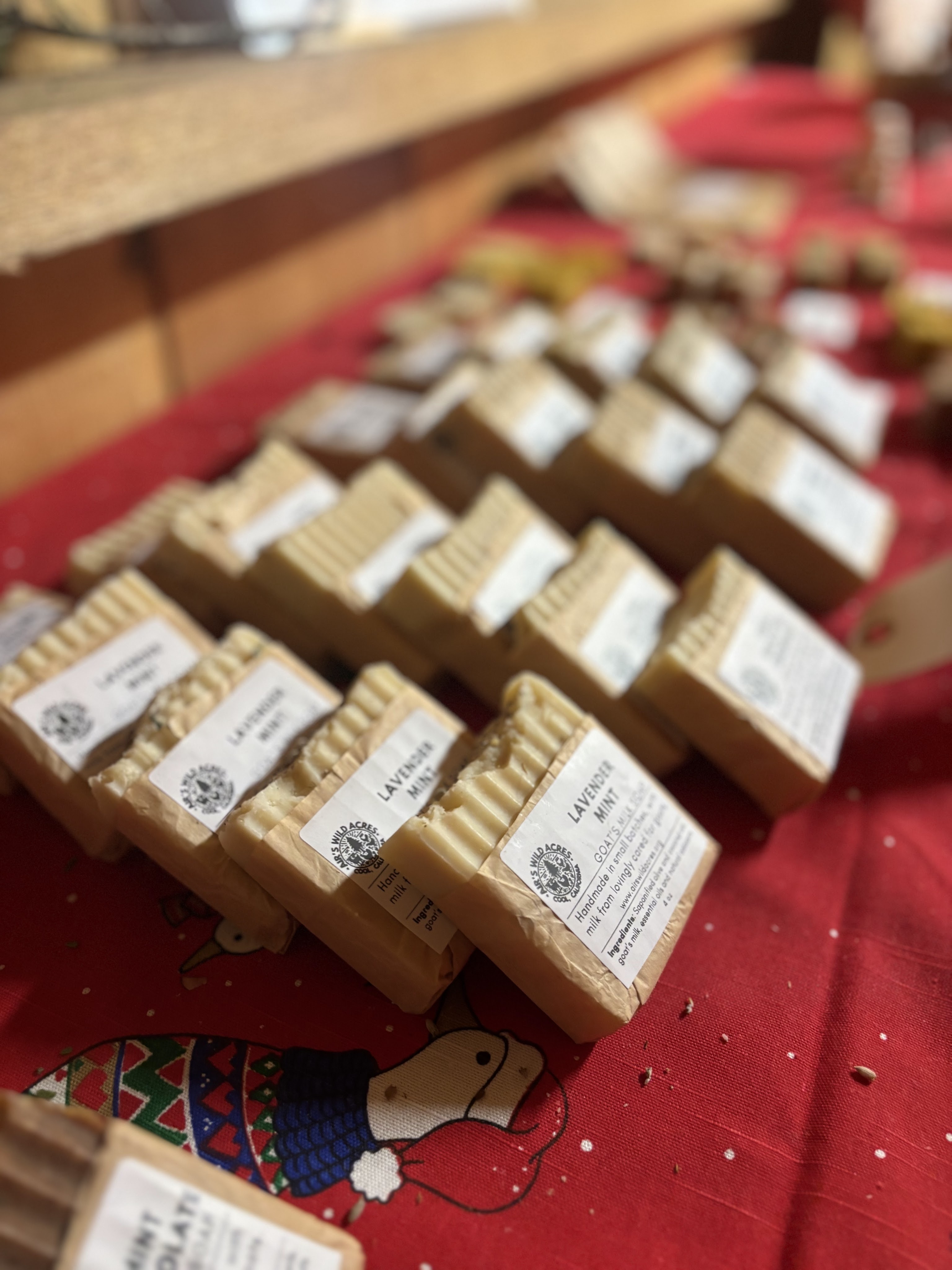We currently have a variety of soaps available, made in small batches with milk from Grits, Phoebe and Rachel. Our soaps are made from a very limited number of ingredients to reduce our environmental impact of sourcing materials, and to provide a more natural product.
